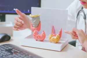 В эфире программы «О самом главном» врач Александр Мясников назвал щитовидную железу органом, отвечающим за жизненный обмен. Она участвует в теплообразовании, водно-солевом обмене, регулирует уровень гормонов щитовидной железы. «Бывает гиперфункция щитовидной железы, когда слишком много гормонов — там бывает сердцебиение, человек задыхается, нервный, вплоть до того, что будет бить посуду. Но чаще мы встречаемся с гипофункцией, когда …
