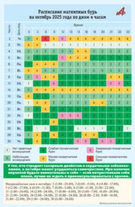 Расписание магнитных бурь на октябрь 2025 года по дням и часам. Инфографика