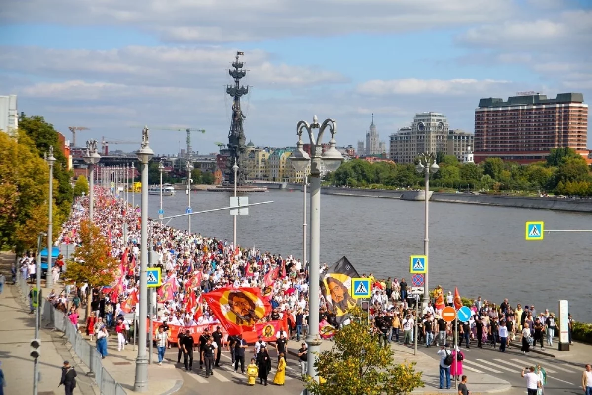 Более 3 часов десятки тысяч москвичей и гостей столицы шли по улицам Москвы от Храма Христа Спасителя до Новодевичьего монастыря. Огромное количество молодежи, семей, священнослужителей, а во главе шествия — сам патриарх Московский и всея Руси Кирилл.